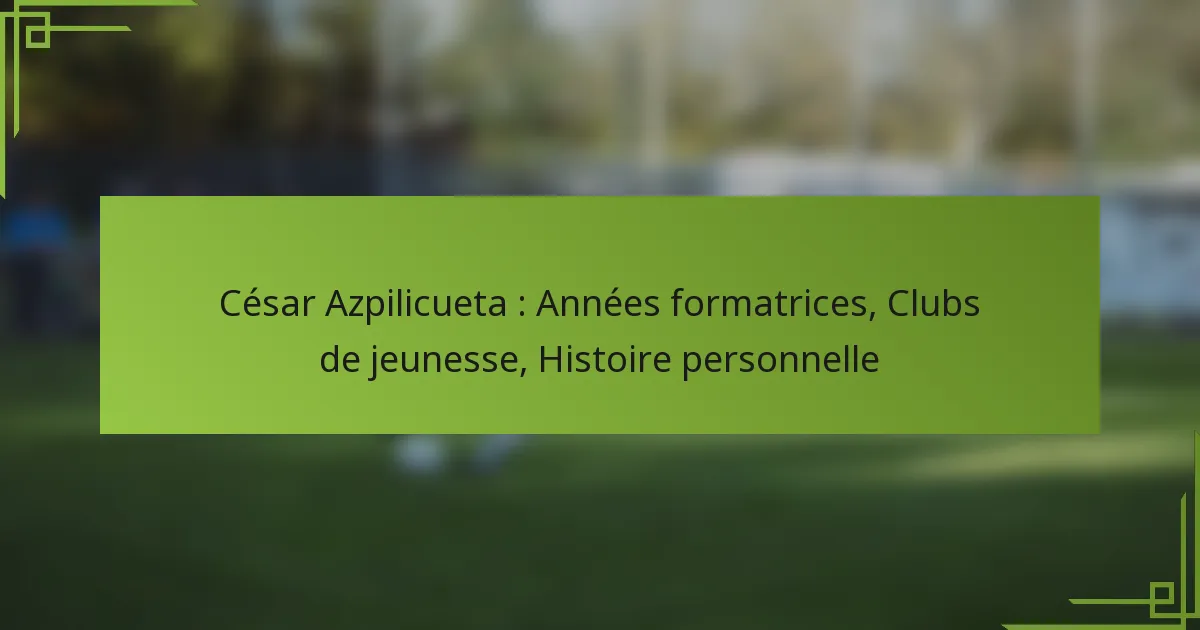 Le parcours de César Azpilicueta pour devenir footballeur professionnel a commencé à Pampelune, en Espagne, où les valeurs familiales et ses premières expériences sportives ont eu une influence significative sur son développement. Son passage dans divers clubs de jeunes lui a permis d’acquérir des compétences essentielles et de la résilience, façonnant son style de jeu unique. L’histoire personnelle d’Azpilicueta reflète son dévouement au sport et les influences fondamentales qui l’ont guidé tout au long de sa carrière.
